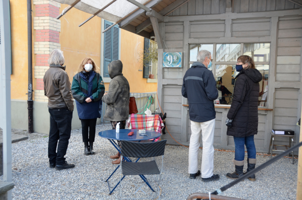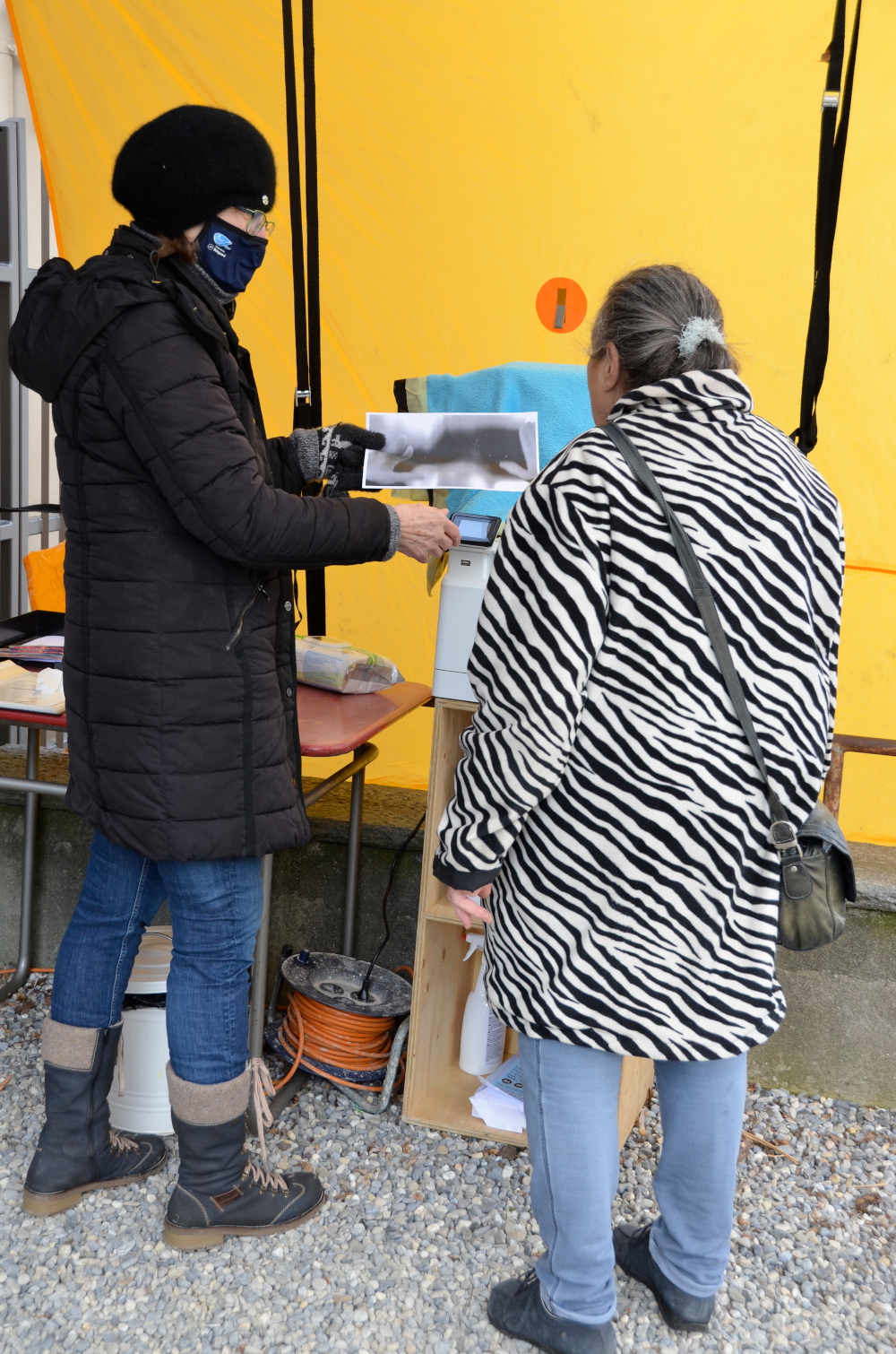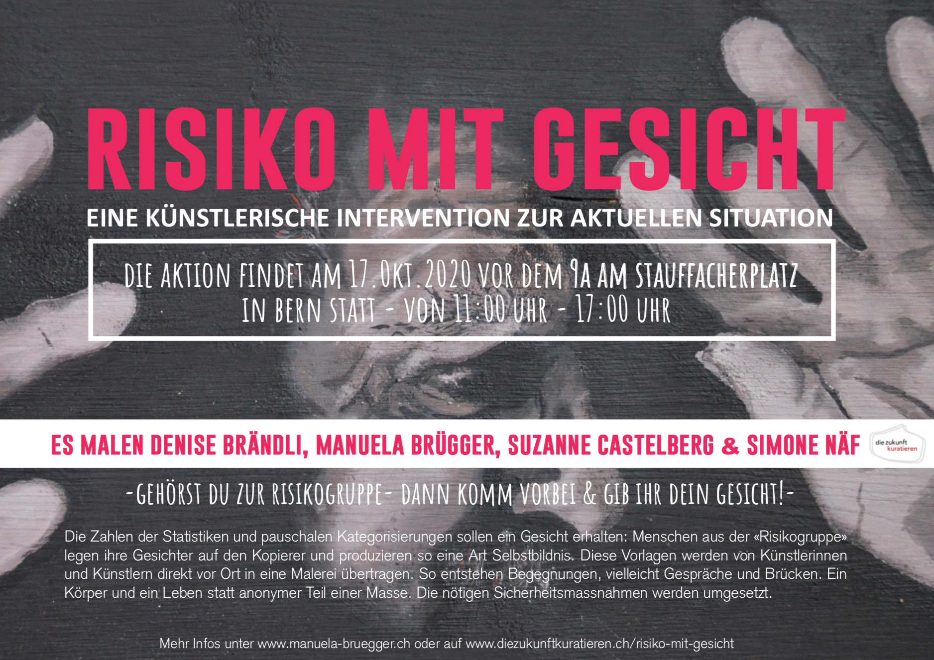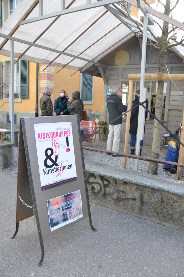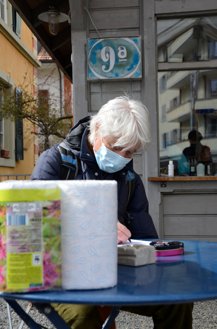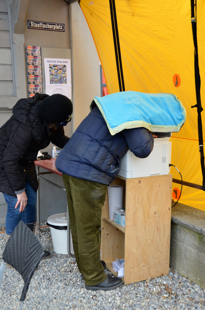 Kunst ist dann, wenn dich jemand vom Kopf auf die Füsse stellt – oder von den Füssen auf den Kopf. Oder deinen Kopf ganz sanft auf die Glasplatte eines Kopierapparats drückt, deine Hände um den Kopf gruppiert, eine lichtdichte Hülle über dich legt und auf die Taste klickt für eine Kopie. Deine Kopie. Und diese eins zu eins in einem expressiven Bild nachmalt. Als Kopie der Kopie deines Gesichts. So geschehen vor und in der Galerie 9a, dem kleinen Kunsthaus im ehemaligen Schuhmacherhäuschen am Stauffacherplatz im Berner Breitenrain. Die Aktion «Risiko mit Gesicht», ausgedacht von der Künstlerin und Kunstvermittlerin Manuela Brügger, ausgeführt von verschiedenen Malerinnen und Malern. In Zeiten der «Körperangst und Körperferne». Wir «Risikogruppen» sind eingeladen, uns dem blitzenden Laserlicht des Kopierers auszusetzen, uns zu vervielfältigen, uns zu verwandeln in mysteriöse Schwarz-Weiss-Landschaften auf Papier, danach in ein farbiges Kunstwerk auf Holz. Und ins Gespräch zu kommen mit den Kunstschaffenden. «Die Aktion ist ein Beitrag gegen die diffuse Gereiztheit, die uns seit Corona wie ein Schleier umhüllt. Hier beim Kopierer begegnen wir uns von Mensch zu Mensch. Grenzen verschwimmen. Brücken entstehen zwischen Kunstaffinen und Kunstdistanzierten. Hierarchien lösen sich auf», sagt Manuela Brügger.