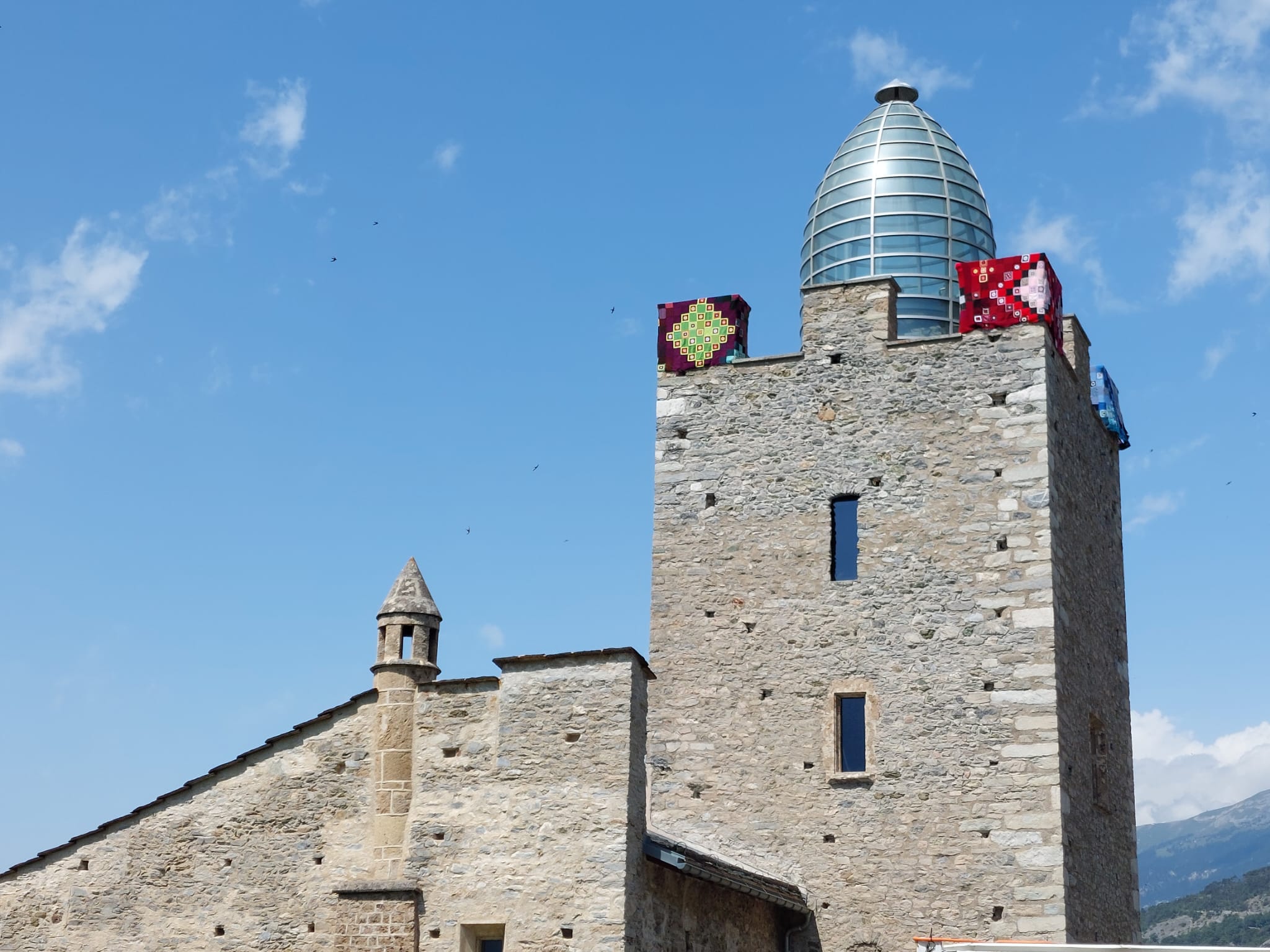 …ist ein soziokulturelles häkel und strick Projekt, mit dem Ziel die Zinnen des Leuker Schlossturms einzuhäkeln und zu stricken.